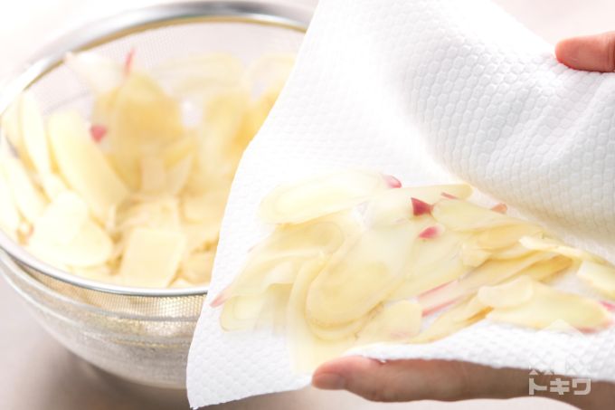 (繊維に沿って切ると歯切れが残ります。スライサーでもOK)